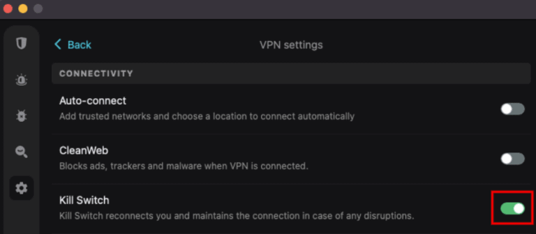 我最喜歡 Surfshark 的終止開關的一點是它很容易啟用。