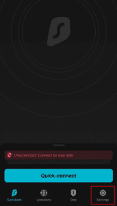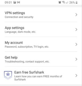 - 打開並登錄您的 Surfshark Android 應用程序。