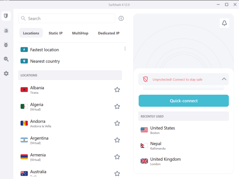 如果您要離開佐治亞州並需要訪問您的佐治亞銀行帳戶或想要解鎖 Setanta Sports 或流媒體 1tv.ge,Surfshark 可以滿足您的需求。