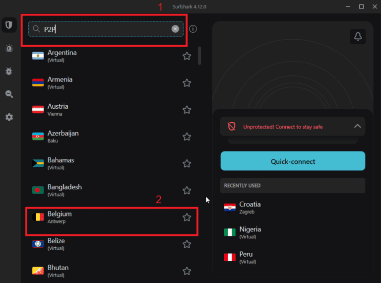 幸運的是,比利時服務器也是Surfshark的P2P服務器之一。