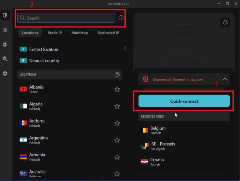 因此,您可以連接到任何 Surfshark 服務器,以保護您的互聯網活動免受 Proximus、BASE、其他 ISP 和公共 Wi-Fi 網絡管理員的攻擊。