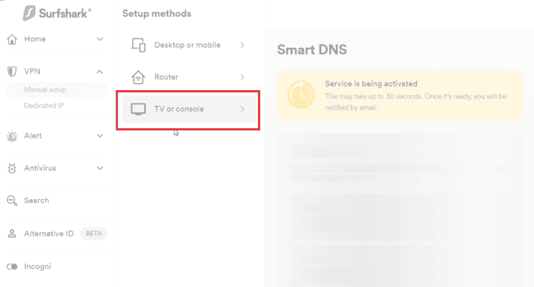 - Surfshark 應該會自動開始設置您的智能 DNS。等待該過程完成。