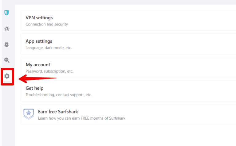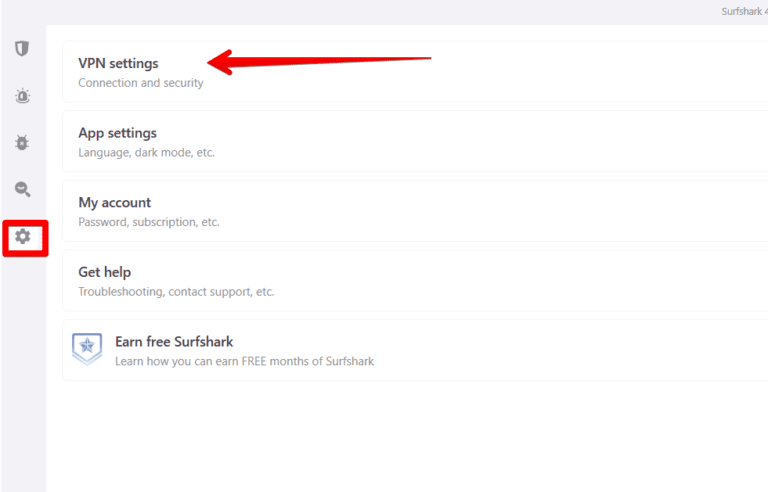 - 單擊設置齒輪(左下角),然後單擊“VPN 設置”。