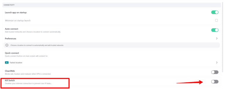 這如果 Surfshark 停止工作,killswitch 功能會關閉您的互聯網突然。這最終會保護您的數據,直到您重新連接為止。