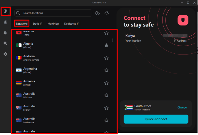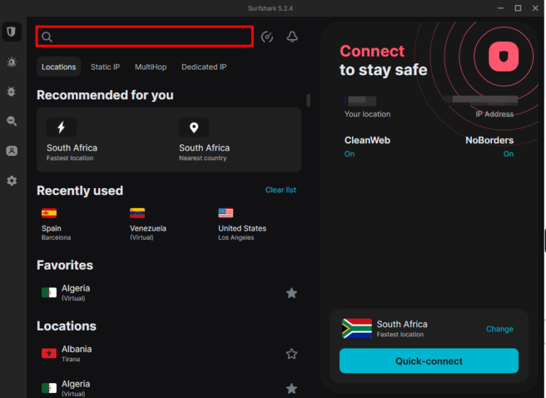 - 連接到適當的 Surfshark 服務器,該服務器可繞過土耳其 X(以前稱為 Twitter)和 Facebook 的 BTK 禁令。使用搜索欄連接到特定的 Surfshark 服務器。