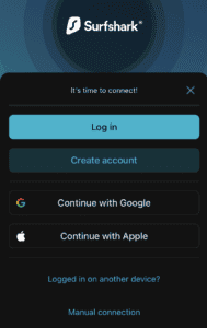 - 獲取 Surfshark 訂閱並在您的智能手機上安裝該應用程序。然後登錄。
