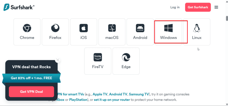 - 下載適用於您 PC 的 Surfshark VPN 應用程序。我將在本指南中下載適用於 Windows 的 Surfshark VPN 應用程序。