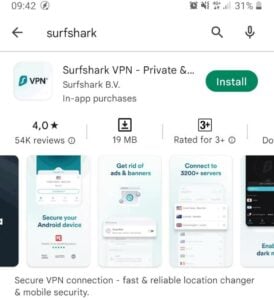 - 在您的設備上下載並安裝 Surfshark 應用程序。