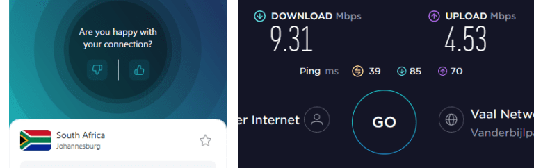 我的南非人位置、IP 地址和 ISP 被隱藏並替換為我連接到的 Surfshark VPN 服務器的詳細信息。