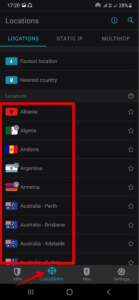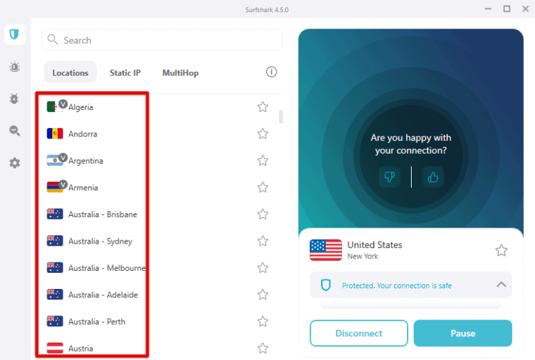 - 選擇低 ping Surfshark 服務器位置並連接。
