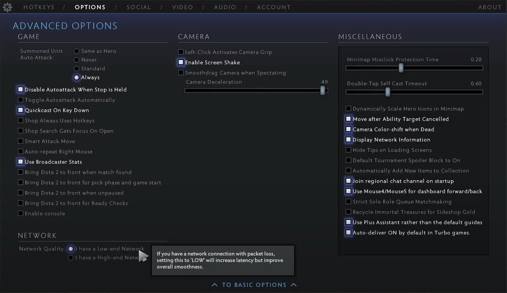 首先啟動 Dota 2 並進入設置菜單。確保您訪問“選項”部分中的“高級選項”選項卡以進行必要的調整。在這裡,您應該啟用“我有低端網絡”選項,這對於互聯網連接速度較慢或帶寬有限的玩家特別有利。此設置有助於優化網絡性能並減少出現延遲的機會。