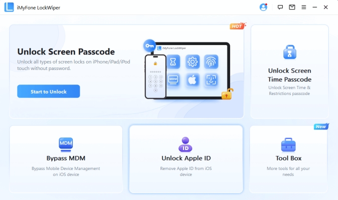 iMyFone LockWiper 鎖刷是另一款針對各種解鎖情況量身定制的頂級解鎖工具。它提供了超越標準屏幕解鎖的一整套功能。對於刪除 Apple ID 和 MDM 鎖,這也是一個不錯的選擇。
