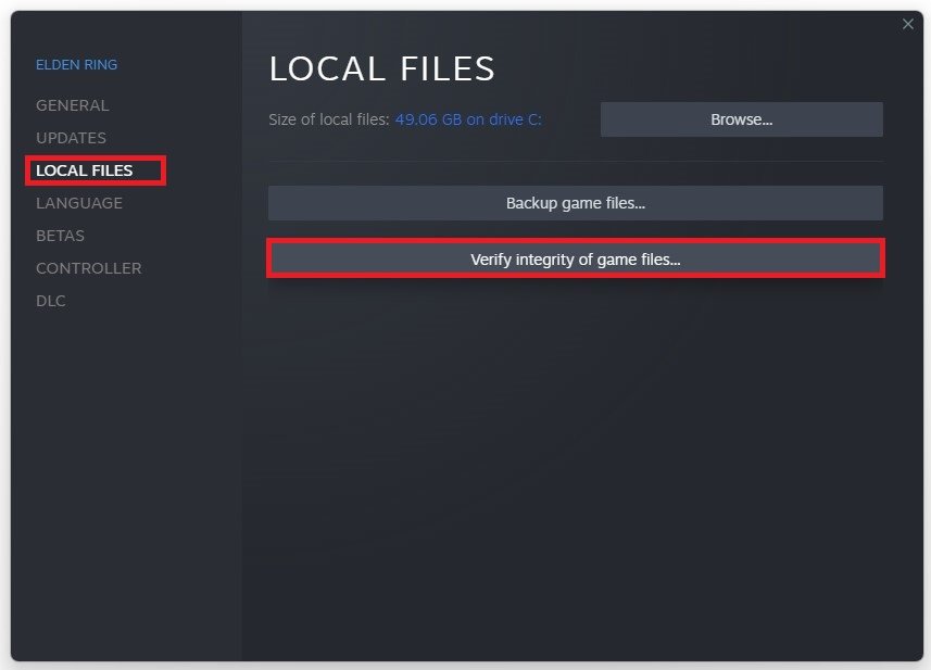 在本地文件選項卡,選擇驗證遊戲文件的完整性。重新下載並替換任何丟失或損壞的遊戲文件將需要一分鐘的時間。
