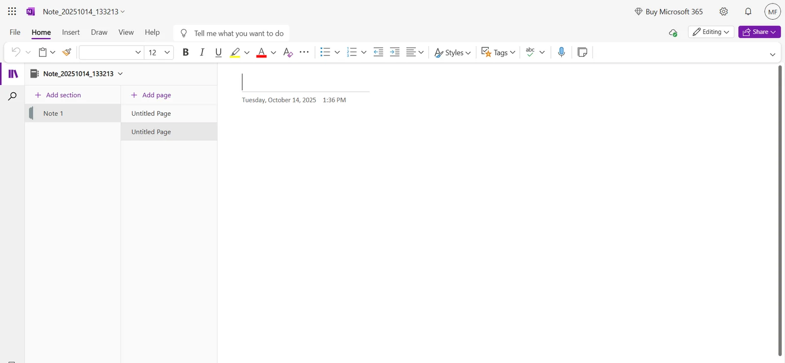 記事本, 另一方面,一切都與靈活性有關。它的工作方式更像是一個空白畫布,您可以單擊任意位置並開始輸入。您可以在頁面上自由移動文本框,在任意位置繪製、添加圖像或創建列表。如果您更喜歡以自己的方式組織信息,或者您已經在使用 Word、Outlook 或 Teams 等 Microsoft 365 應用,那麼這非常有用。