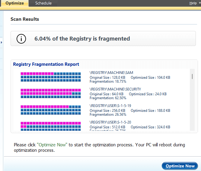 第 7 步:單擊立即優化按鈕來優化和減小註冊表的大小。