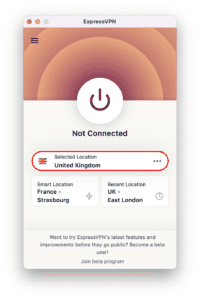 - 打開 ExpressVPN 應用程序並單擊“選定的地點”按鈕。