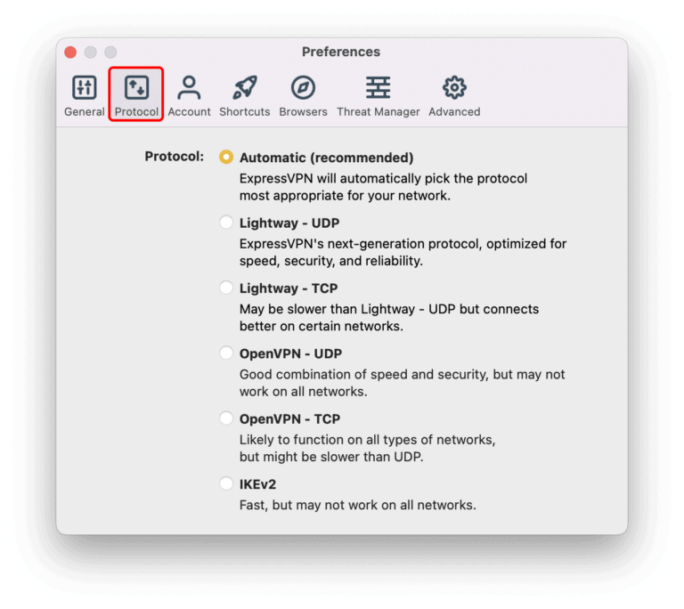 如果您在切換到不同的服務器位置後仍然遇到問題,您可以嘗試的另一件事是更改您的 VPN 協議。