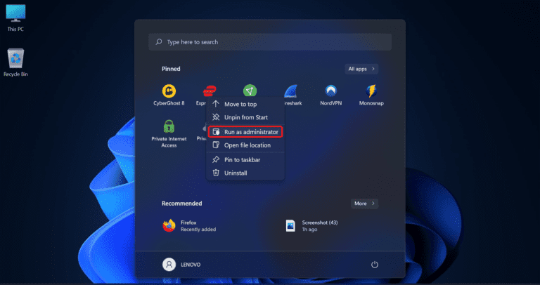 - 右鍵單擊桌面上的 ExpressVPN 圖標,然後選擇“以管理員身份運行。“