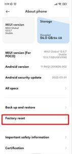 - 輕敲恢復出廠設置如果您已經備份了數據。