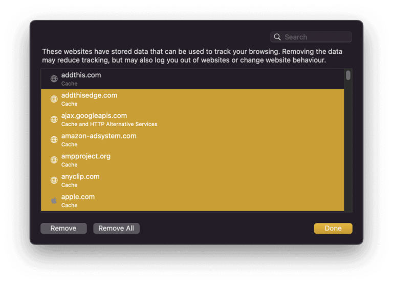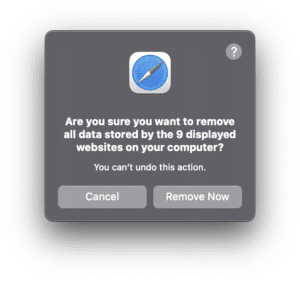- 這將打開所有已保存的 cookie 和數據緩存的列表。點擊“消除全部。 ”