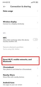 - 向下滾動並點擊“重置 Wi-Fi、移動網絡和藍牙。”