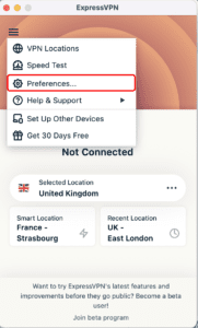 - 關閉“首選項”窗口並嘗試重新連接到 ExpressVPN。