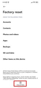 - 選擇刪除所有內容和設置從出現的菜單中。
