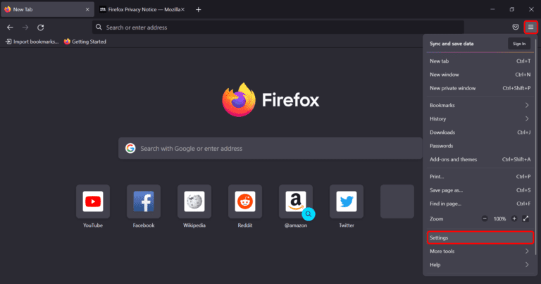 - 打開 Firefox,然後單擊屏幕右上角的三行,然後選擇設定。
