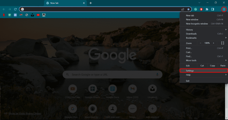 - 打開 Chrome 並單擊屏幕右上角的三個點。選擇設定。
