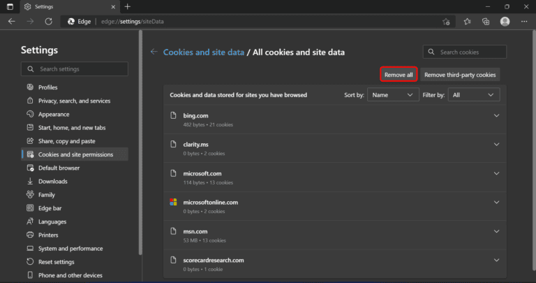 - 前往“查看所有 cookie 和網站數據”並點擊它。