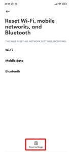 - 系統會提示您輸入密碼或 PIN 碼。一旦你這樣做了,點擊重置網絡再次設置確認。