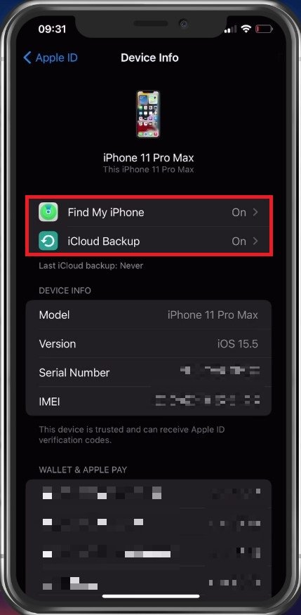 確保禁用查找我的 iPhone和iCloud 備份暫時在此設備上使用,因為它可能會在驗證您的 Apple ID 憑據時導致問題。