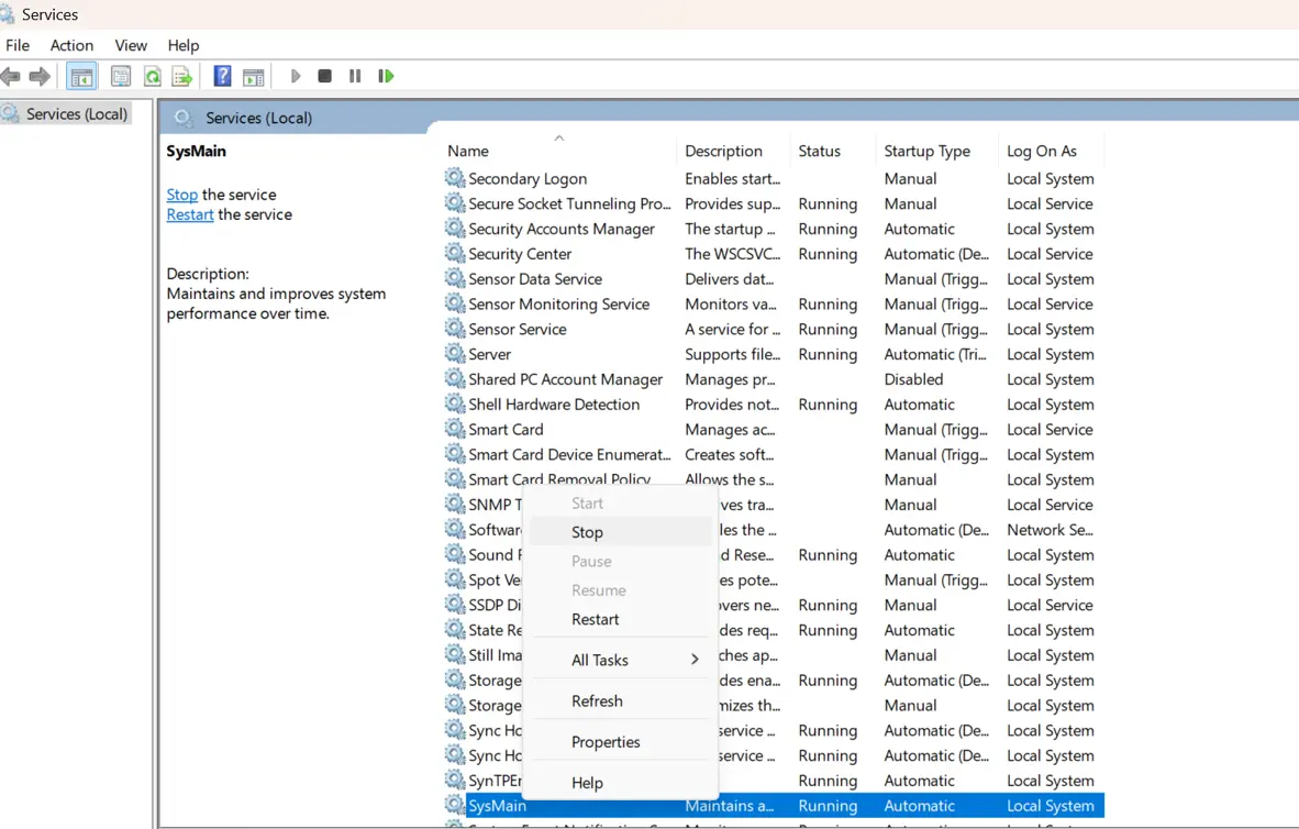 修復 8 – 禁用 SysMain (Superfetch) 服務