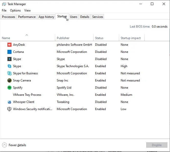 4. 這將禁用計算機上的所有啟動應用程序,從而解決計算機速度變慢的問題並加速緩慢的 Windows。