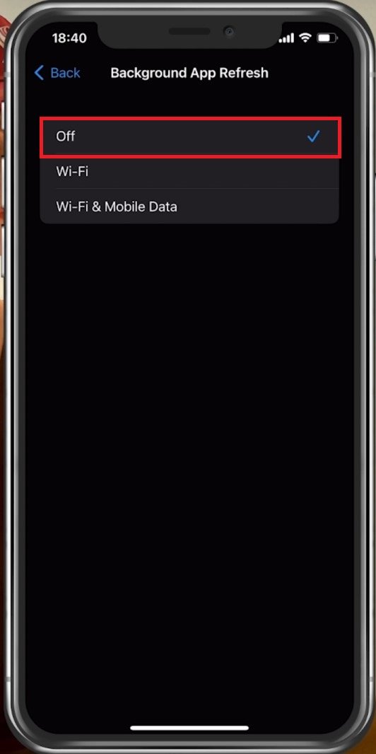 返回常規設置,點擊後台應用程序刷新。您應該在遊戲中關閉此設置,以防止您的設備在遊戲中更新其他應用程序。省電模式還會降低您的性能並導致 FPS 下降,因此請確保您的設備已充電,並且在玩《堡壘之夜》時禁用省電模式。