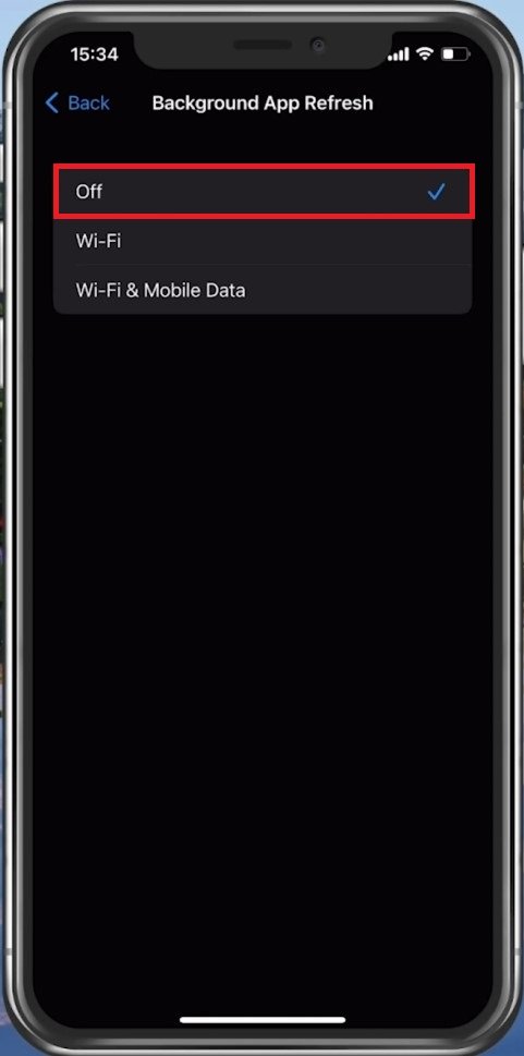 回到你的一般的設置,選項卡後台應用程序刷新。在遊戲中關閉此設置可防止您的設備在遊戲中更新其他應用程序。省電模式也會導致延遲,因此請確保您的設備已充電,並且在玩 Minecraft 袖珍版時禁用省電模式。