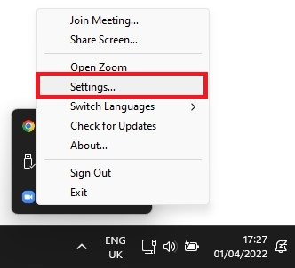 打開“縮放”,如果您找不到該窗口,請打開系統托盤並右鍵單擊“縮放”圖標以訪問您的設置。