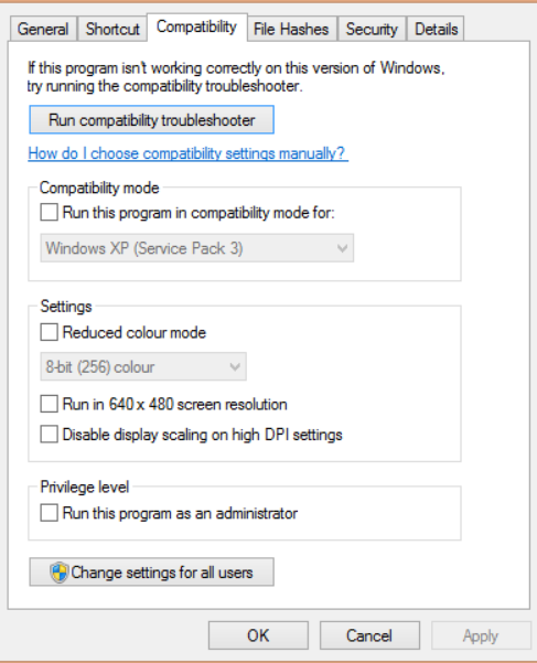 步驟 5-在同一選項卡中,您可能會找到“以兼容模式運行此程序”選項。從下拉列表中選擇舊版本的操作系統並保存設置。
