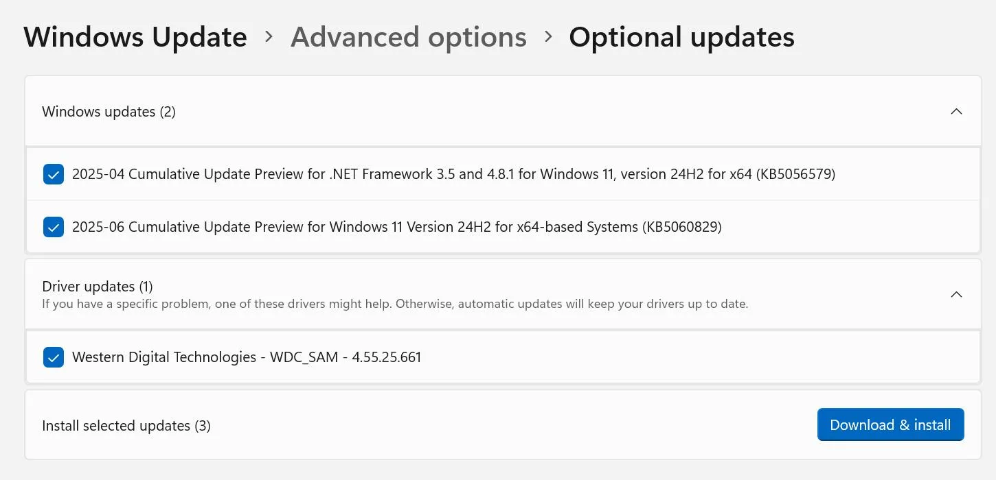 - 選擇此處顯示的所有更新,然後單擊“下載並安裝”按鈕。