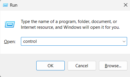 步驟2– 在運行中,使用命令“Control”並按 Enter 鍵。