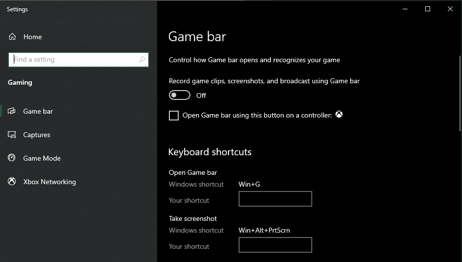 禁用遊戲欄錄製