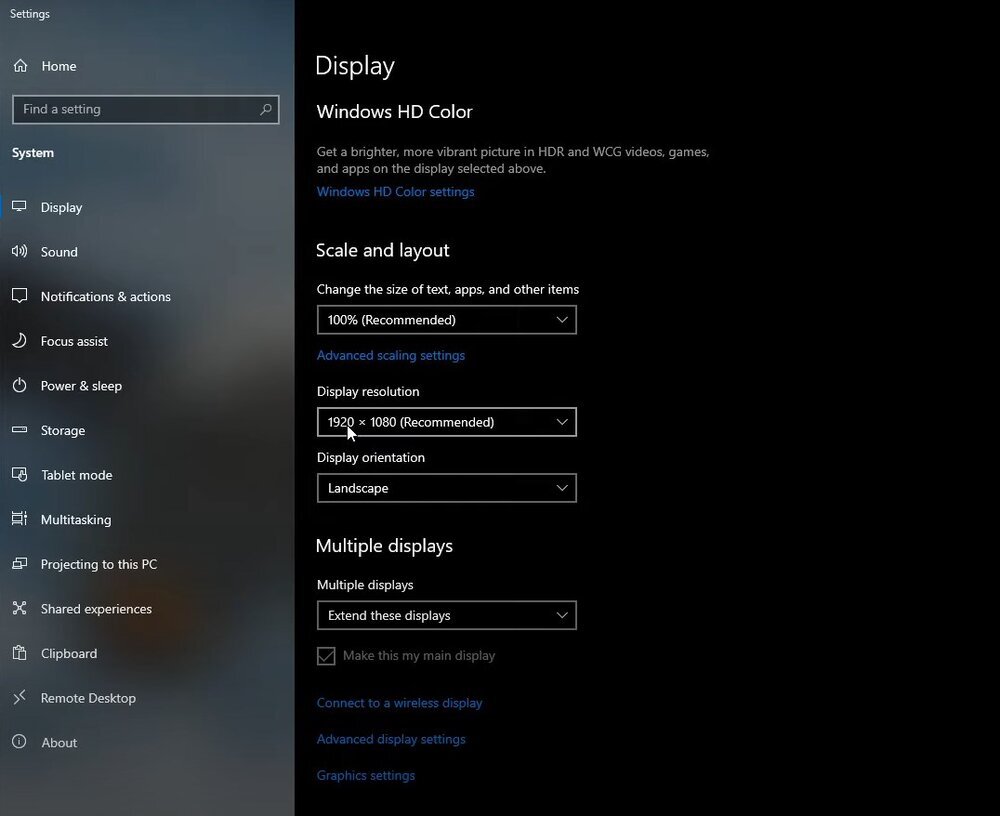 首先,右鍵單擊桌面,然後從上下文菜單中選擇“顯示設置”。這將打開“顯示設置”窗口,您可以在其中進行調整以改善遊戲體驗。
