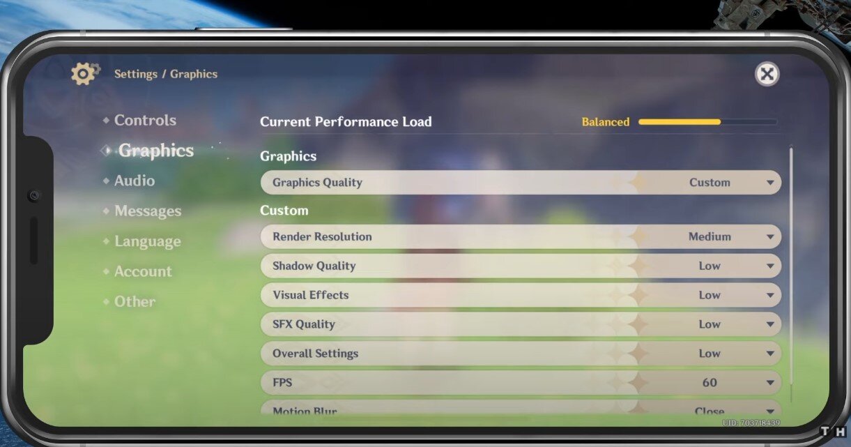 打開您的 Genshin Impact 移動應用程序並導航到您的圖形設定.