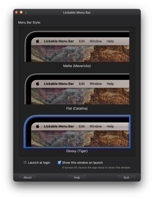 使用該應用程序就像經典 Mac 時尚一樣簡單;只需打開它,選擇您想要的菜單欄樣式,即可享受即時效果。