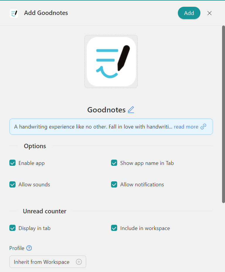 將 Goodnotes 或 Notability 等應用程序添加到 Rambox 非常簡單。只需按照以下步驟操作: