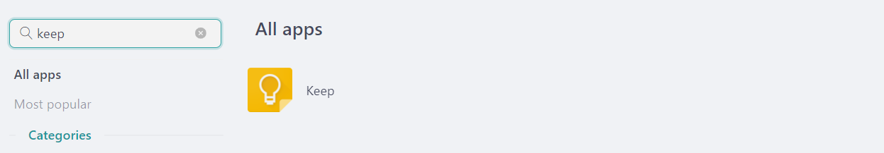 - 在搜索欄中輸入“Keep”,然後選擇“Google Keep”。