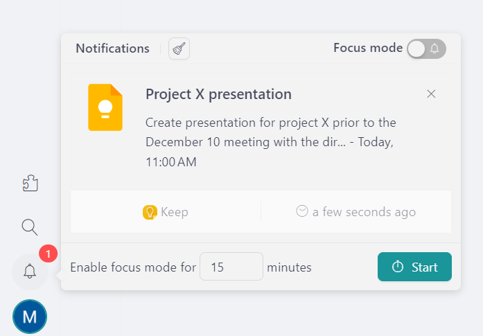- 通知中心:使用 Rambox,您將永遠不會錯過 Google Keep 的重要提醒。例如,假設您將任務提醒設置為周二下午 1:00。在這種情況下,Rambox 會通知您 - 即使您當時正在使用其他應用程序(例如 Word)。這樣,無論您正在做什麼,都可以輕鬆掌握所有待辦事項和提醒。