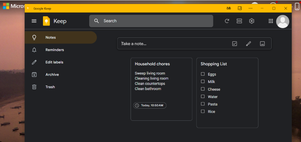 瞧!您已準備好直接從桌面使用 Google Keep,無需打開瀏覽器。