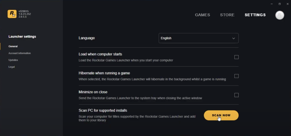 Rockstar Games Launcher > 啟動器設置 > 常規