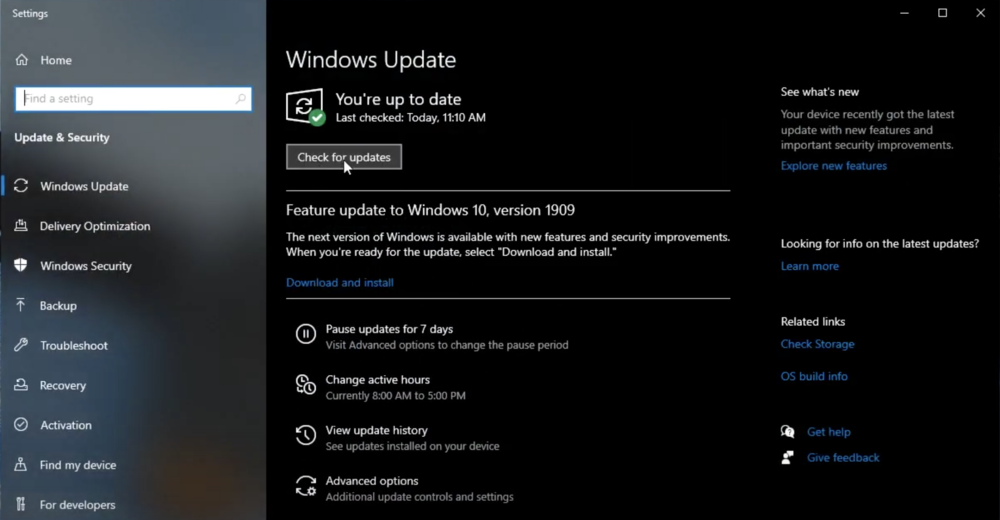確保您的操作系統是最新的也很重要。您可以通過在“開始”菜單中搜索“更新”並在系統設置窗口中選擇“檢查更新”來執行此操作。